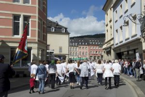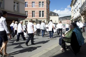 Die Zeiten, wo die Springprozession indes die Menschen von nah und fern „en masse“ anzog, sind in ihren Augen jedoch vorbei. Die Ursachen liegen auf der Hand: „Es gibt einfach zu viel Entertainment. Zudem kommen die Menschen heute gezielt zur Prozession. Danach geht es per Bus zu Restaurants, die außerhalb von Echternach liegen. Wir haben in der lokalen Gastronomie und Hotellerie leider ohnehin nicht mehr ausreichend Potenzial, um alle zu verköstigen“, ergänzt Liliane Faber. Und dennoch: „Die Springprozession ist und bleibt aber Teil unserer Kultur und unserer Identität. Und es wäre schade, wenn es sie irgendwann nicht mehr geben würde.“