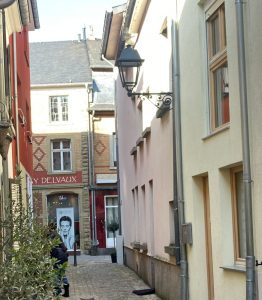 Der Markt hat eine lange Tradition. Grevenmacher erhält sehr früh fast zeitgleich mit der Schueberfouer die Marktrechte. Zwar war es dieses Jahr nur ein „Fun um Glacis“ in abgespeckter Form, aber Luxemburgs größtes Volksfest ist rund 680 Jahre alt. Zurück zur Fußgängerzone: So wie der „Blannen Theis“ früher der kulturelle Mittelpunkt des Grevenmacher Marktes war, ist sie heute das Herzstück der Moselstadt.