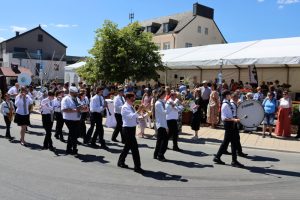 Erst ertönt ein dumpfes Trommeln, dann erklingen Klarinetten, Flöten, Trompeten. Während die auf der rue de Luxembourg in Contern versammelte Menschenmasse eine Gasse bildet, erscheint Luc Frieden, begleitet vom Conterner Schöffen- und Gemeinderat und den Klängen des „Feierwon“ zwischen den Kirmesbuden, die entlang der Hauptstraße aufgestellt waren. Ein freundliches Nicken nach links, ein Winken nach rechts, bis der Tross mit Luc Frieden in dem eben erst frisch von Bürgermeisterin Marion Zovilé-Braquet (CSV) eingeweihtem Dorfzentrum eintrifft.