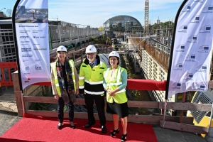 Der Campus der Europäischen Investitionsbank (EIB) mit Sitz auf Kirchberg wächst. Mit einem Ziel: alle Angestellten an einem Standort zu vereinen. Aus dem Grund entsteht unter der aktuellen Adresse mit den Nummern 98 bis 100 am Boulevard Konrad Adenauer ein neues Gebäude, dessen Grundstein am Dienstag gelegt wurde. Rund 1.500 Menschen sollen künftig dort ihrer Arbeit nachgehen können.