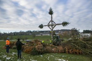 In Garnich wird das Kreuz erst am Sonntagabend brennen. Am Samstagnachmittag liefen die Vorbereitungen auf Hochtouren. Auch hier war einer unserer Fotografen dabei.