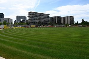 Die Anwohner werden sich kaum über die jahrelangen Bauarbeiten quasi vor ihrer Haustür beschweren können. Auf einer Fläche von 16,6 Hektar entsteht in Gasperich der größte Park der Hauptstadt. Die Arbeiten sind in vollem Gange, die ersten Bäume sind schon gepflanzt und die beiden Wiesen für Freizeitaktivitäten erstrahlen bereist in einem satten Grün.