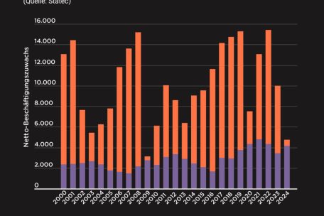 Die Details zeigen zudem, dass die Entwicklung volkswirtschaftlich eigentlich noch negativer ausgefallen ist: Der kleine verbuchte Zuwachs ist nämlich fast allein auf den Staat zurückzuführen. Im Privatsektor gab es während des gesamten Jahres 2024 praktisch kein Nettojobwachstum.