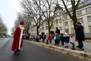 Auch in Pandemie-Zeiten ließ der Nikolaus es sich nicht nehmen, den Kindern der Escher Grundschulen einen Besuch abzustatten. Weil in diesem Jahr kein Umzug stattfinden kann, lieferte der „Kleeschen“ höchstpersönlich an den Schulen aus. Dafür braucht er zwei Tage. Gestern war der Auftakt unter anderem in der Brouch- und Dellhéicht-Schule, heute stehen die restlichen Schulen auf seinem Programm.