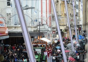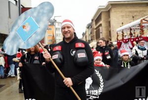 Bei leichtem Sprühregen hatten sich am geschäftsoffenen Sonntag Hunderte Menschen in der Escher Alzettestraße eingefunden, um dem „Kleeschen“ zuzuwinken und sich Kamellen oder eine „Titchen“ zu holen. 18 Gruppen, davon vier Wagen und die Pferdekutsche mit dem Nikolaus, nahmen am Umzug teil, der pünktlich um 14.30 Uhr am Brillplatz startete. Die „Boxemännercher“ hatte der Escher Geschäftsverband Acaie dem Veranstalter „Syndicat d’initiative“ gestiftet. Angeführt wurde der Umzug von den Majoretten, denen viele andere Escher Vereine folgten. Insgesamt 500 Teilnehmer, davon 300 Kinder und auch mehrere Hunde vom „Escher Hondsveräin“, zogen am Sonntag durch die „Minettemetropole“.