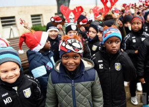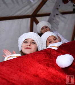 In Differdingen wurden am Samstag sogar 800 Teilnehmer aus 20 Vereinen gezählt. Angeführt wurde der Festumzug von der lokalen Jugendfeuerwehr und der Fanfare aus Niederkorn, die zusammen mit der „Harmonie municipale“ und dem lokalen Traktorverein mit seinem Fuhrpark den Tross sicher zum Marktplatz brachten. Mit über 200 Kindern stellten die Fußballer des FC Differdingen 03 in diesem Jahr eine der größten Fußtruppen. Angekommen am Marktplatz, wo sich im Rahmen des alljährlichen Nikolausmarktes 15 lokale Vereinigungen und einige Schausteller sowie Händler einfanden, wurde der „Kleeschen“ mit seinen beiden Gesellen von Bürgermeister Roberto Traversini mit seinem Gemeinderat begrüßt und durch die Menschenmenge zum Zelt geleitet, wo dann 500 „Titercher“ mit Süßigkeiten an die noch nicht schulpflichtigen Kinder Differdingens verteilt wurden.