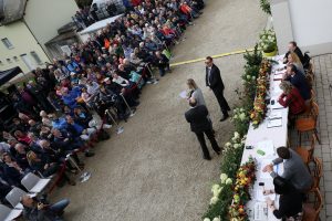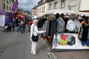 An den Ständen, die überall im Stadtzentrum verteilt waren, wurde eifrig gefeilscht und gefachsimpelt. Die Veranstalter legen beim Angebot grundsätzlich viel Wert auf Kunst, Handwerk und regionale Produkte. Das wussten die Besucher zu schätzen. Viele gingen ordentlich bepackt mit Tüten und Körben wieder zu ihrem Wagen. „Wir haben gerade erst renoviert. Hier kann man Dekorationsobjekte kaufen, die man sonst nirgends findet“, meinte etwa eine junge Mutter. Ihr Kind stand neben ihr – und strahlte übers ganze Gesicht. Es hatte gerade bei einer Tombola ein „cooles Spiel“ gewonnen.