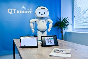 Dies sei dem sehr ähnlich, was sie mit einem Lehrer, einem Elternteil oder einem Therapeuten tun, aber auf eine Art und Weise, die für sie attraktiver und verständlicher sei. Während des Unterrichts arbeite QTrobot als Mediator zwischen dem Erwachsenen und dem Kind. Je nachdem, welche Fähigkeiten das Kind beherrscht, werde entsprechend mit dem Roboter geübt. „Das Lernen wird durch Spiele und interaktive Szenarien und Geschichtenerzählen entwickelt“, erklärt die LuxAl-Mitgründerin.