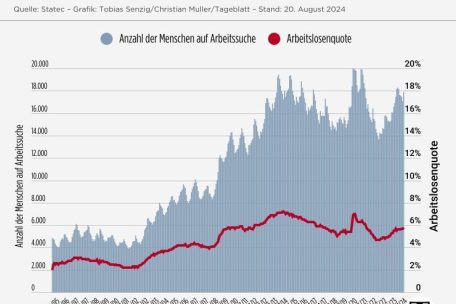 Auch bei den Juli-Zahlen der ADEM gibt es erste Anzeichen einer Erholung: Nach einem Höchststand zu Jahresbeginn bei 18.317 ist die Zahl der Menschen auf Arbeitssuche in den ersten sieben Monaten 2024 bereits wieder um rund 400 gefallen.