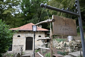 Es gilt als einmalig im Land und gehört zu einem 850 langen Kanal, der den Mühlsteinen die Wasserkraft lieferte, um Holzfasern herzustellen, aus denen anschließend Papier gewonnen wurde. Ein Stück weiter geht es einen kleinen Stich quer durch den Wald nach oben zum „Fuussebau“. Im Jahr 2000 kauft das „Syndicat“ das 40 Ar große, völlig zugewucherte Areal, in das sich ein Ingenieur der Eisenbahn in die Einsamkeit zurückgezogen hatte.