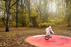 Im Rahmen der Europäischen Kulturhauptstadt ist es nun endlich so weit: Mehrere Holzpaneele bilden die Grundlage für eine mobile kreisförmige Bühne, deren Oberfläche Sumo farbenfroh gestaltet hat. „Die Idee dahinter ist, die Plattform immer wieder an anderen wunderbaren Orten rund um Esch aufzustellen“, erklärt Gomez. Seine Idee sei, stets Kunst und Sport zusammenzubringen. „Die Kunst spornt mich an, sie inspiriert mich zu besonderen Tricks auf dem Rad.“