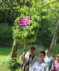 Nicht weit entfernt von den Kickern der Luna gingen die Karatekas von Präsident Fred Charlé zu Werke. Bei unserem Besuch kurz vor Mittag waren bereits um die 50 Mitglieder zugegen. Eine Zahl, die sich im Laufe des Mittags noch verdoppeln sollte. „In den letzten 20 Jahren hat sich dieser Feiertag zu einem wahren Familientag für unsere Mitglieder entwickelt“, so der Präsident, der den etwas übergroßen Kranz stolz präsentierte. Bis in die frühen Abendstunden wurde im Eingangsbereich, der zum Ronnebierg führt, in gemütlicher Runde gefeiert.