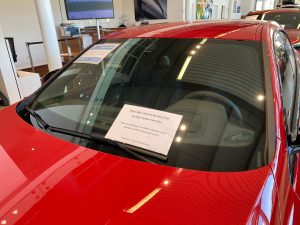 Im Showroom sind sämtliche Fahrzeuge abgeschlossen. Der Innenraum ist nur auf Anfrage zugänglich. Der Kunde bekommt dann Handschuhe ausgehändigt. Das Tragen einer Maske ist auch im Ausstellungsraum Pflicht. Die Kunden scheint es nicht zu stören. „Wir müssen eh überall mit Maske rumlaufen und es sind sowieso nie so viele Besucher im Showroom, als dass man sich Gedanken machen müsste“, so Clara (35) aus Lintgen.