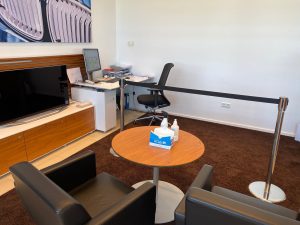 Auch das Prinzip des separaten Ausgangs wird beibehalten. Auf diese Weise sollen unnötige Kontakte vermieden werden. Alle Besucher müssen zudem eine Maske tragen und einen Sicherheitsabstand zum Arbeitsplatz des Serviceberaters einhalten. Der Kunde wartet hierfür an einer vorgelagerten Theke. Die Arbeitsplätze der Neuwagenverkäufer wurden mit einem Absperrband von den Kunden getrennt. Bei den Gebrauchtwagenhändlern und den Service-Mitarbeitern wurden hierfür Plexiglasscheiben installiert. Reinigungskräfte durchstreifen regelmäßig das Gebäude. In der Wartezone wurden die Sessel weiter auseinandergesetzt. Kaffee gibt es jetzt nur noch im Pappbecher, kalte Getränke in der Plastikflasche. „Wir mögen das nicht, haben aber im Moment keine andere Wahl“, so Fuhrmann. Die Kunden zeigen Verständnis. „Ja, es ist nicht unbedingt umweltfreundlich, aber die Gesundheit geht nun mal vor“, verteidigt Adrien (52) aus Walferdingen das Vorgehen des Autohauses.