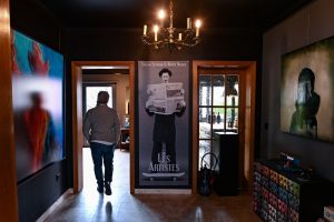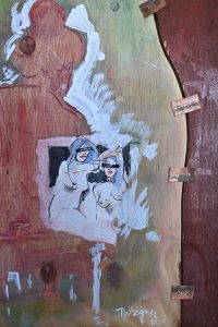 Die Räumlichkeiten in der rue Marcel Reuland passen hervorragend. „Bleif doheem“, das mantraartig gepredigte Gebot wird spürbar. Die Ausstellung ist zu Hause. Und zwar im Haus der Künstler Raphael Gindt und Daniel Mac Loyd, die unter anderem durch ihre großformatigen Fassadenmalereien bekannt sein dürften. Beide haben mit viel Energie die ganze Logistik rund um die COronArt-Expo übernommen.