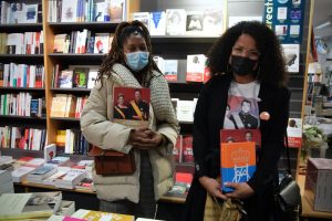 Diese kommt pünktlich um 15.00 Uhr in der „Librairie Diederich“ an, begrüßt freundlich das wartende Volk und setzt sich dann in den Teil des Geschäfts, in dem normalerweise die Luxemburgensia stehen und die Bestellungen aufgegeben werden. Vorteil: Der Raum ist von hinten nicht betretbar und hat einen Notausgang. Der wird freilich am Donnerstag nicht gebraucht, denn es sind an diesem Nachmittag wohl ausnahmslos Bewunderer der großherzoglichen Familie vor Ort. So auch Jael und Sandra aus Esch. Jael trägt ein T-Shirt mit dem Konterfei des großherzoglichen Paares. Nein, Fan von den beiden sei sie nicht, „aber ich bin ein Fan von ihrer Arbeit“. Damit meint sie auch den Einsatz der Großherzogin gegen sexuelle Gewalt in Kriegs- und Konfliktgebieten. Der Erlös des Buches geht nämlich an ihre „Stand Speak Rise Up!“-Vereinigung.