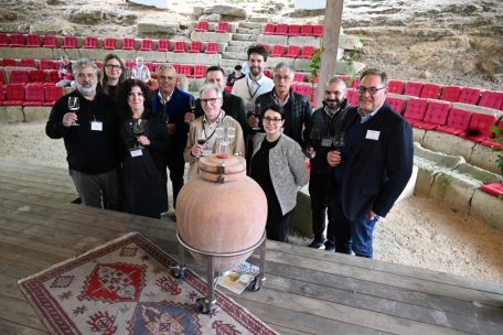 Im Rahmen der Veranstaltung in Dalheim präsentierten drei luxemburgische Winzer ihre aktuellen Experimente mit der alten Weinbautechnik in Ton-Amphoren, die heute eine Renaissance erlebt. Die Veranstaltung war organisiert von den Ricciacus Frënn Duelem und dem Weingut Domaine L&R Kox.