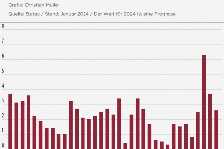 Für das laufende Jahr rechnet Statec mit einer weiteren Beruhigung der Preissteigerungen. Im Jahr 2024 soll die Inflationsrate laut den letzten Prognosen der Statistiker auf 2,6 Prozent fallen. Vor allem in der zweiten Jahreshälfte soll die Inflationsrate hierzulande wieder nahe bei der angestrebten Marke von zwei Prozent liegen.