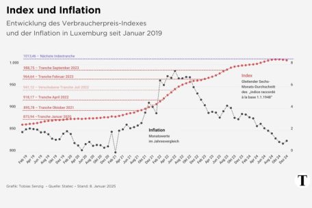 Zum Fallen der nächsten Indextranche hat Statec in der Mitteilung vom Mittwoch keine neuen Angaben gemacht. Zu Wochenbeginn hatten die Statistiker in ihrem monatlichen Konjunkturbericht jedoch erklärt, dass die nächste Indextranche, den aktuellen Prognosen zufolge, für das zweite Quartal 2025 vorgesehen sei. Die darauffolgende Tranche könnte dann im zweiten Quartal 2026 fallen.