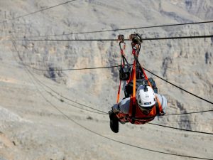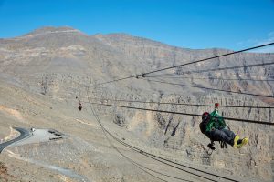 Die Zukunft Ras Al Khaimahs hängt an einem stählernen Faden. An einer Zipline, um genau zu sein. Und weil das kleine Emirat nun einmal am Persischen Golf im Schatten Dubais liegt, handelt es sich nicht um irgendeine Drahtseilrutsche, sondern um die längste Zipline der Welt. Mit der am 1. Februar eröffneten Rekordattraktion will Ras al Khaimah Aktivtouristen anlocken – und sein etwas langweiliges Image als reine Badedestination aufpolieren.