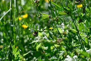 Bienen ziehen wilde Wiesen akkurat gestutztem Rasen vor. Wenn man also etwas für die Insekten tun will, macht man am besten … nichts. Konkret heißt das laut Alexandra Arendt: „Den Rasen nur ein- bis zweimal im Jahr mähen und alles blühen lassen.“ Das Ergebnis: Bienen und andere Insekten erfreuen sich an der Vielfalt von Klee, Löwenzahn und Co. „Man muss nicht immer überall Unkraut jäten. Es kann auch schön sein, wenn man die Natur einfach mal gewähren lässt“, stellt Alexandra Arendt fest, die das in ihrem Privatgarten auch so macht. Mit dem Resultat, dass sich die Honigbienen der Hobby-Imkerin, aber auch Wildbienen dort wohlfühlen. Wer sich nun nur schwer mit der Idee einer wilden Grünfläche anfreunden kann, kann als Kompromiss auch nur in einer Ecke des Gartens das Gras wachsen lassen. „Jeder Ort, der in Ruhe gelassen wird, bringt etwas“, so Alexandra Arendt.