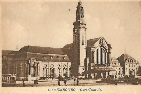 Der Bahnhof von Luxemburg war an die belgischen, französischen und deutschen Eisenbahnnetze angebunden. Bekanntlich entschied man sich aus militärischen Gründen, den Bahnhof auf dem ländlichen Gebiet der Gemeinde Hollerich zu errichten. Das erste Postgebäude im Bahnhofsviertel befand sich damals an jener Stelle, wo sich heute der Supermarkt Delhaize beziehungsweise das Reisebüro Voyages Flammang befindet.