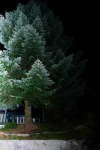 Um zwanzig nach acht schwebt die Tanne dann wirklich – majestätisch, schwerelos – über den Köpfen des Teams. Als wäre sie leicht wie ein Blatt Papier. „Es ist jedes Jahr eine Herausforderung“, sagt Joly und schaut nach oben, „Wir müssen den Baum im Ganzen transportieren, ohne dass er Schaden nimmt.“