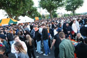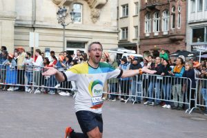 Feierlaune herrschte an allen Ecken. „Eigentlich bin ich wegen dem ganzen Drumherum hier. Die Stimmung ist top, ich genieße das mit einem Bier in der Hand“, so Yann, der sich einen Platz neben der Strecke auf der Place d’Armes gesucht hatte und einfach die Atmosphäre des Marathons aufsaugen wollte.