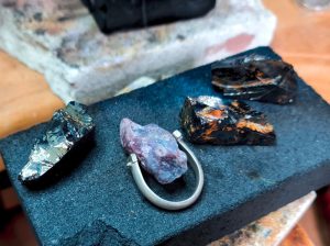 Schliff und bringt die Edelsteine zum Leuchten. Er bezeichnet sich selbst als Künstler. In seine Kreationen fließen neben Edelsteinen als Elemente auch Holz, Metalle und Beton ein. Sogar das Atelier sowie der Verkaufsstand für Mittelalter- und Hobbymärkte, Oktav oder Weihnachtsmarkt sind Eigenkreationen.