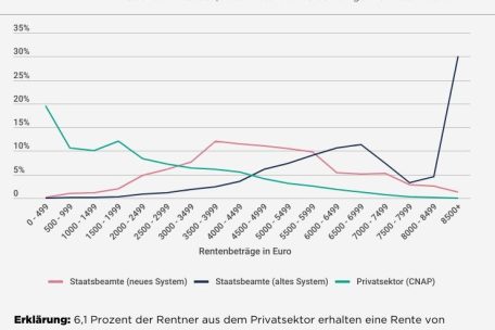 Bei den Menschen, die ihr Arbeitsleben beim Staat verbracht haben, sieht die Lage jedoch ganz anders aus: Rund 30 Prozent der aktuellen Rentner erhalten mehr als 8.500 Euro monatlich. Fast zehn Prozent haben sogar monatliche Renten von über 10.000 Euro pro Monat.