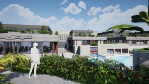 Von dort lässt sich die Aussicht in den Park und die umliegende Natur genießen. Die Dauer der Bauzeit beziffert Verwaltungsrats-Präsident Hammelmann mit vier bis fünf Jahren. Da der Betrieb weiterlaufen soll, entsteht gegenüber dem Eingang zum Thermalgebäude ein neues 3.800 Quadratmeter großes Gebäude namens „Les Sources“. In dessen Erdgeschoss kommen die Ärzte unter, in den oberen Stockwerken sind Räume für die Anwendungen der Kurgäste geplant.