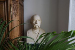 In einem Regal mit kunstvollen Schnitzereien, die fast schon musealen Charakter haben, steht das Kompendium „Ampélographie“ der Editions Jeanne Laffitte. Die sieben großformatigen, mit Leder eingeschlagenen, weinroten Bände mit der goldenen Schrift fallen auf. Die 3.220 Seiten sind die Basis jedes Wissens über Wein und beschreiben die Blätter der unterschiedlichen Weinpflanzen.