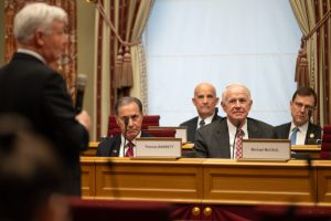 19 Mitglieder des Repräsentantenhauses waren aus den USA angereist, um an den Gedenkfeiern zum 80. Jubiläum der „Battle of the Bulge“ teilzunehmen. Angeführt wurden sie vom texanischen Republikaner Michael McCaul. Die Delegation war am Samstag bei den Gedenkfeiern in Hamm und wurde am Sonntag in der Chamber empfangen, wo sich McGaul ins goldene Buch des Luxemburger Parlaments eintrug. Drei Fragen an den Delegationschef des US-Repräsentantenhauses.