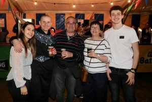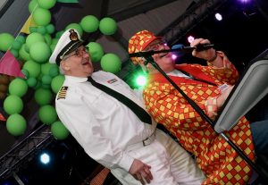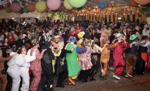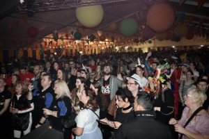 Ab 21.00 Uhr heizten unter dem Namen Party Champs die Dinosaurier unter den Luxemburger Stimmungsmachern, Jeannot Conter und Rol Girres, mit ihren „Zwou Bulle Mokka“ & Co. dem närrischen Volk mächtig ein, ehe Käpt’n Ända & Matrous K1000 feat. Sandy & The Hüttes ab 22.30 Uhr das Ruder übernahmen. Es herrschte eine ausgelassene Stimmung unter den über 1.000 Narren im Zelt, die bis spät in die Nacht hinein tanzten, sangen und feierten. Während die beiden Stimmungsorchester bei den Jecken überzeugen konnten, kam das neu angekündigte Orchester The Noisemakers mit seinem Repertoire nicht besonders gut bei einem Teil des Publikums an, das dann auch frühzeitig mit einer gewissen Enttäuschung die Heimreise antrat.