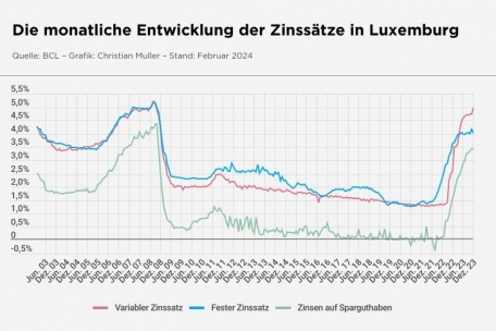 Im Laufe des Jahres 2022 hat sich für Kreditnehmer wie auch für Sparer alles verändert. Für die Haushalte entstand eine Situation, wies es sie seit Jahren in Luxemburg nicht mehr gegeben hatte. Zinssätze, egal ob für Kredite oder fürs Sparen, haben sich seitdem mehr als verdreifacht. Das Niedrigzinsumfeld, das mit der Finanzkrise im Jahr 2008 entstanden war, war vorbei.