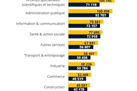 Gestiegen sind die Löhne seit 2018 aber – das liegt natürlich auch an der automatischen Lohnindexierung – in allen Gehaltsklassen. Bis 2022 waren es im Durchschnitt 3,6 Prozent pro Jahr, laut Statec insgesamt 15,4 Prozent. Im Bereich der wissenschaftlichen oder technischen Tätigkeiten und in der öffentlichen Verwaltung aber „sind die Löhne überdurchschnittlich hoch und sind überdurchschnittlich gewachsen“. Bei großen Unternehmen gibt es übrigens statistisch gesehen größere Chancen auf ein höheres Gehalt als bei kleinen Firmen.