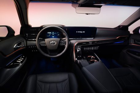 Strom wird in der Brennstoffzelle des Mirai produziert, die besteht aus über 330 Zellen, in denen Wasserstoff in Verbindung mit Luft über einen chemischen Prozess Strom produziert, der dann den E-Motor antreibt. Der E-Motor leistet 134 kW/182 PS, das maximale Drehmoment beträgt 300 Nm, der Antrieb erfolgt über eine e-CVT Automatik an die Hinterräder, die Spitze beträgt 175 km/h. Im Gegensatz zu der nervigen Geräuschkulisse der CVT-Automatik bei anderen Autos arbeitet die Automatik im Mirai diskret, sanft und reibungslos und so zeigte sich die 4,98 m lange Limousine als komfortabler, bestens ausgestatteter, leiser und angenehmer Reisewagen. Sowohl auf dem Land, auf der Autobahn als auch in der Stadt zeigte sich der Mirai als leicht handlich und betont angenehm zu fahren.