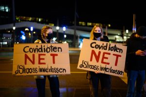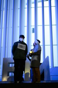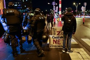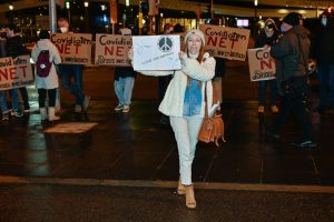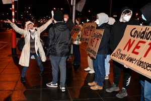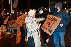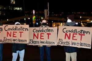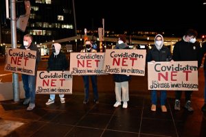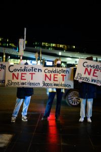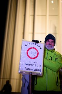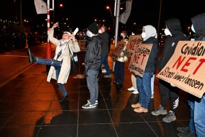 Gegendemo zum „Marche Blanche“ am 14. Januar 2022 vor der Philharmonie in Luxemburg.