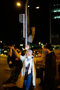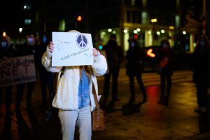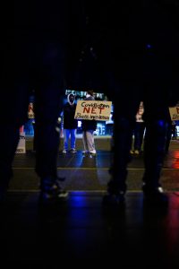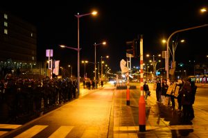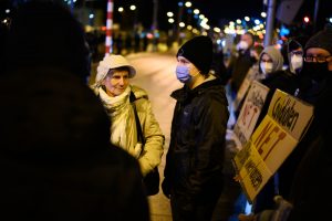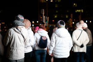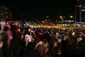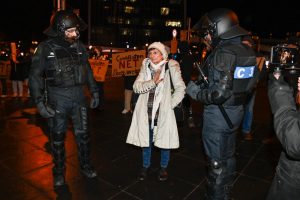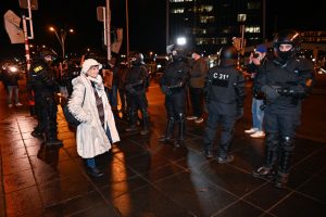 Anfangs sei geplant gewesen, den weißen Spaziergang zu blockieren – das habe aber aufgrund der Versammlung direkt vor der Philharmonie nicht funktioniert, weshalb man sich entschieden habe, sich auf der gegenüberliegenden Straßenseite zu positionieren. „Das wurde uns so auch von der Polizei genehmigt.“