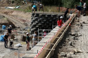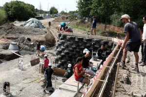 Es besteht aus Dingen, die normalerweise im Müll landen (alte Autoreifen, gebrauchte Flaschen …) und produziert selbst seine Energie. In Redingen entsteht gerade das erste „Äerdschëff“ in Luxemburg. Das Gebäude stellt Sicht- und Denkweisen in Frage.