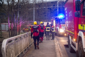 CGDIS-Kräfte oberhalb der Alzette – auf der eine Sperre schwimmt  Foto: Editpress/Tania Feller