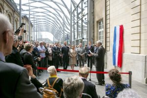 Großrabbiner Alain Nacache sprach das Gebet denn auch zur Einweihung, nachdem Staatsminister Xavier Bettel auf die tiefen Wunden, von der Judenverfolgung aufgerissen, eingegangen war. Er sei stolz darauf, dass die aktuelle Regierung sich bei der jüdischen Gemeinschaft entschuldigt hat und die oben genannte Stiftung gegründet habe, auch wenn dies lange gedauert habe. Er sprach auch die Plakette an, die etwas später am Morgen am hauptstädtischen Bahnhof enthüllt wurde. Hier erinnerte der Präsident des Komitees für das Gedenken an den Zweiten Weltkrieg, Laurent Moyse, an die Züge, die zu den Vernichtungslagern der Nazis aufbrachen.