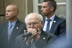 Albert Aflalo, Präsident des „Consistoire israélite“ ging auf die vielen Jahren der Diskussion ein, die der Errichtung des Monumentes vorausgingen und auf die Tatsache, dass Antisemitismus auch heute noch Menschen tötet. Er begrüßte in dem Kontext die Tatsache, dass vor einigen Tagen die „Fondation luxembourgeoise de la mémoire de la Shoah“ ins Leben gerufen worden sei. Sie werde unter anderem mit jungen Leuten arbeiten und somit pädagogisch wirken. Der Titel der Skulptur „Kaddish“ sei ein Gebet, das üblicherweise bei Beerdigungen rezitiert werde. Die Opfer der Shoah hatten keine Möglichkeit das „Kaddish“ zu sprechen oder mit ihm begraben zu werden.