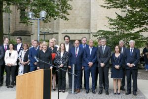 Und dies in Anwesenheit von Großherzog Henri, Kammerpräsident Mars Di Bartolomeo (LSAP), Opfer- und Resistenzverbänden, zahlreichen Regierungsvertretern, Abgeordneten und Repräsentanten der Stadt Luxemburg sowie vielen Vertretern des israelitischen Konsistoriums. Zu besinnlich-traurigen Klängen des Streichquartetts des Konservatoriums wurde die Granit-Skuptur also vor zahlreichen Menschen enthüllt.