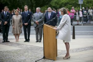 Die Bürgermeisterin der Hauptstadt, Lydie Polfer (DP), ging dabei unter anderem auf die Geschichte des Platzes ein, an dem die erste Synagoge Luxemburgs ab 1825 der jüdischen Gemeinschaft als religiöser Versammlungsort diente. Eine größere Synagoge wurde 1894 an der Ecke rue Notre Dame/rue Aldringen errichtet. Diese wurde von den Nazis zerstört. Sie erinnerte aber auch daran, dass die Bevölkerung der Stadt Luxemburg vor dem Zweiten Weltkrieg und der Nazi-Besatzung zu einem Prozent aus Juden bestand; nach dem Krieg waren es noch 0,3 Prozent.