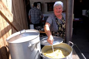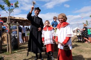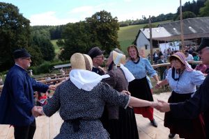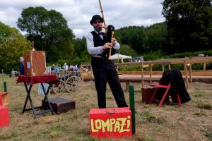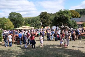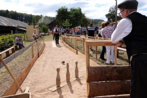 Es waren Laiendarsteller, welche das dörfliche Leben von früher nachstellten. Bei der Kirmes wurden Tänze aus längst vergangener Zeit aufgeführt. Wer wollte, konnte seine Kräfte am Hau den Lukas versuchen. Ein wenig Erfahrung war auf der Sandkegelbahn nicht von Nachteil, um alle Neune zu treffen. Kinder zielten mit Bällen auf Dosen oder versuchten sich mittels Strohsäcken umzuwerfen. Der anwesende Pastor segnete einen, ob man wollte oder nicht, mit Weihwasser. Die fröhlichen Zecher am Kartentisch ließen sich dadurch nicht stören. Im Hintergrund spielte der Leierkastenmann auf. Zum Essen gab es „Kiermeskascht“. Das ganze Schauspiel war wie eine perfekte Kopie aus der Vergangenheit.