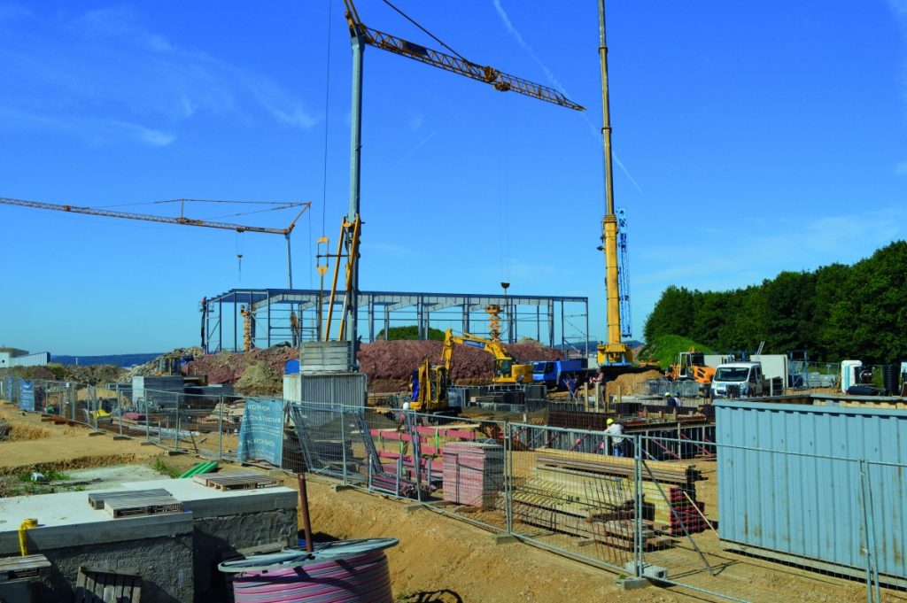 Interessant ist die Aufteilung des Gewerbegebietes in drei Bereiche. Ist man in Richtung Hosingen unterwegs, sieht man nun linksseitig (auf Erpeldinger Gelände) die bereits errichtete neue Heintz-van-Landewyck-Produktionsstätte, daneben erstreckt sich ein erster Teilbereich, auf der sich Firmen aus dem Baugewerbe niederlassen können. Verschiedene Namen wie „Solid S.A“, „Feidt“ und „Krombach Construction“ kursieren, doch da die Verträge noch nicht die letzte Unterschrift tragen, möchte man darüber nicht zu viel verraten.