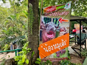 Das 2.000 Hektar große Zoo-Gelände liegt etwa zwei Autostunden südöstlich von Bangkok und 35 Kilometer nördlich der Touristenhochburg Pattaya. An den Wochenenden wird es besonders voll: Zuletzt hatten 12.000 Moo-Deng-Fans den Tierpark an einem einzigen Tag überrannt, die Betreiber haben die Besuchszeit an solchen Tagen pro Person inzwischen auf fünf Minuten an Moo Dengs Gehege begrenzt.