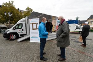 Das Paar ist inzwischen näher herangetreten. „Ist das die Polizei?“, fragt der Mann eine junge Mitarbeiterin, die sich ihm mit einem freundlichen Lächeln und einer einladenden Geste genähert hatte. In seiner Stimme schwingt immer noch eine Portion Unsicherheit mit. Eigentlich sind seine Frau und er Stammkunden auf dem „Glacismaart“. Die Luxemburger Ordnungskräfte haben sie in den letzten Jahren aber nur in Ausnahmefällen zwischen den Ständen und Lieferwagen der Händler gesehen. Und dann auch nur, wenn etwas vorgefallen war.