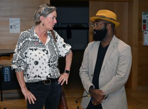 Kiza Magendane erzählte von seiner eigenen Lebensgeschichte, wie er als Flüchtling aus dem Kongo Teil der niederländischen Zivilgesellschaft wurde. Ein Weg, auf dem er die Hoffnung behielt und den Grundstein für sein weiteres Engagement legte. Er warnte vor zu viel Zynismus, zu viel kontextlosen Nachrichten und plädierte dafür, den Dialog zu suchen – insbesondere mit jenen, die der eigenen Sache am weitesten entfernt erscheinen. Der Grundstein kann bereits im familiären Umfeld, im Umgang mit Freunden und seinen Nächsten gelegt werden. Ein Unterschied könne bereits im Kleinen viel bewirken, weswegen er auch das Newsletter-Projekt des Tageblatt unterstützt.